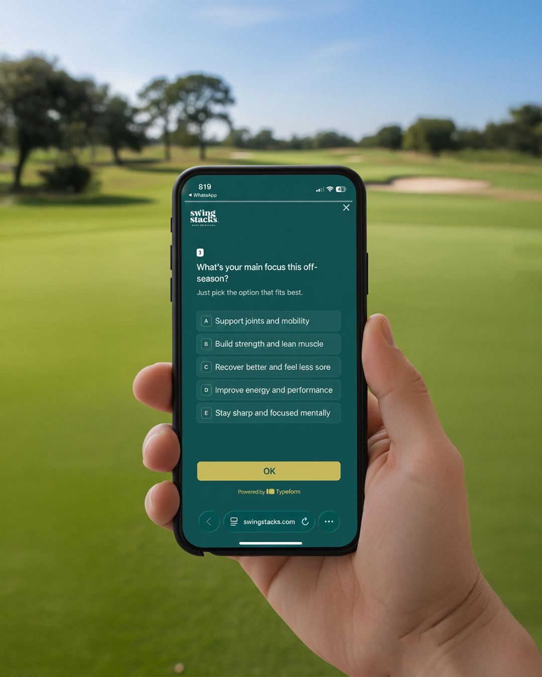 Take a 60-second quiz and get a personalized golf supplement stack based on your body, routine, and goals. Built with clean, U.S.-made supplements.