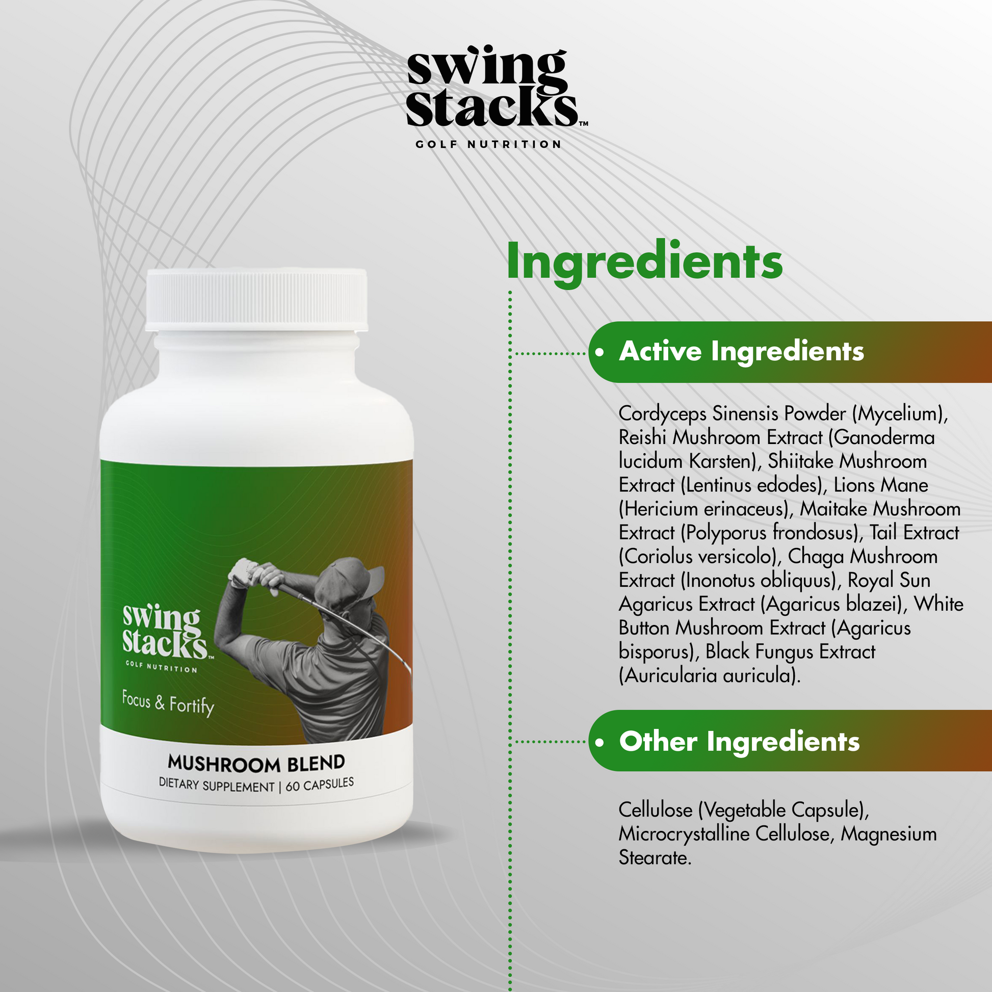 Your best rounds start with sharp focus, steady energy, and long-term resilience. Focus & Fortify is a cutting-edge functional mushroom blend, designed to enhance brain function, boost endurance, and protect against oxidative stress. Featuring a powerful mix of Lion’s Mane, Shiitake, Cordyceps, and Reishi mushrooms, this supplement supports cognitive performance, immune balance, and overall longevity, helping you stay locked in on the course and beyond.