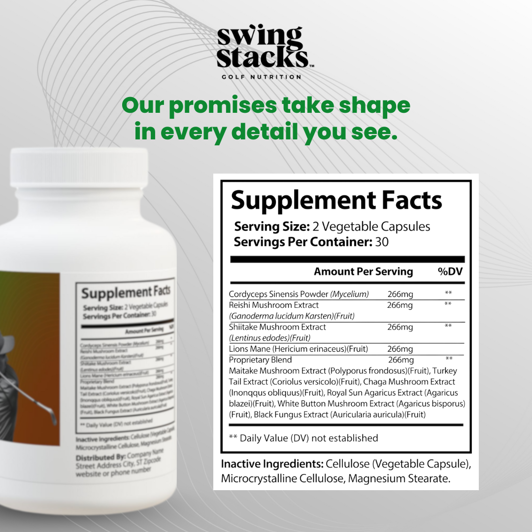 Swing Stacks™ supplements are capsuled in the USA with globally sourced ingredients at FDA-registered, GMP-certified facilities and undergo third-party laboratory testing to ensure purity and potency.